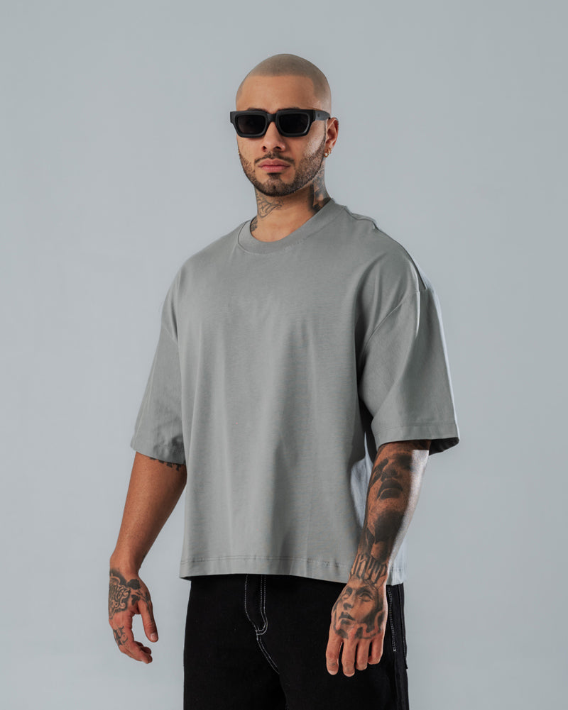 Camiseta Básica Boxy Fit Gris Claro